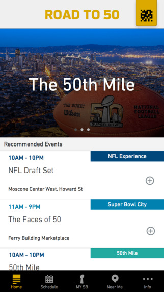 If you’re in the Bay Area – get yourself the Road to 50 App. It’s free, and it’s made special for this SuperBowl. It’ll tell you all the things you need to know for being in the Bay Area this weekend, with a schedule of events, interactive maps and transport information.