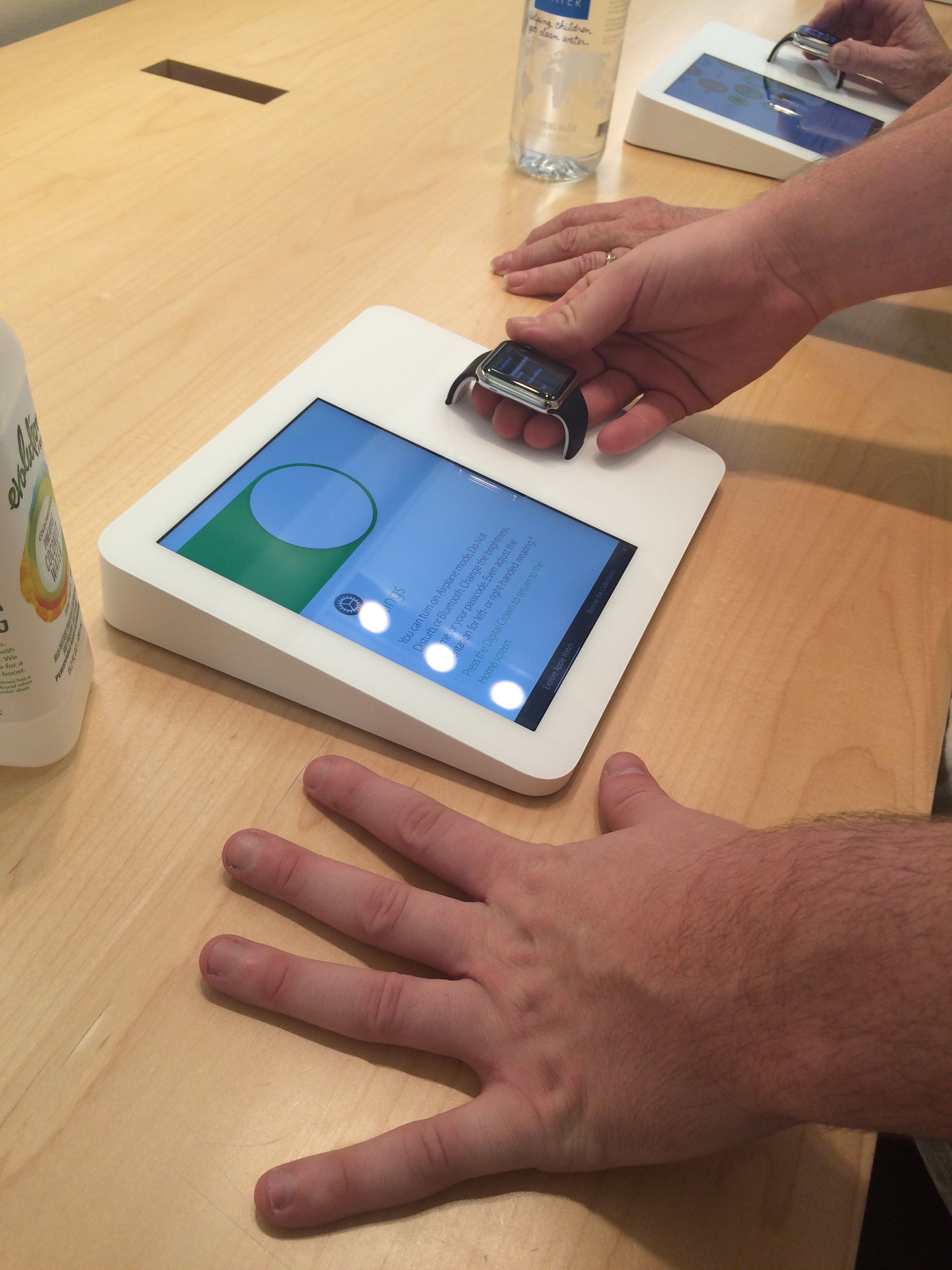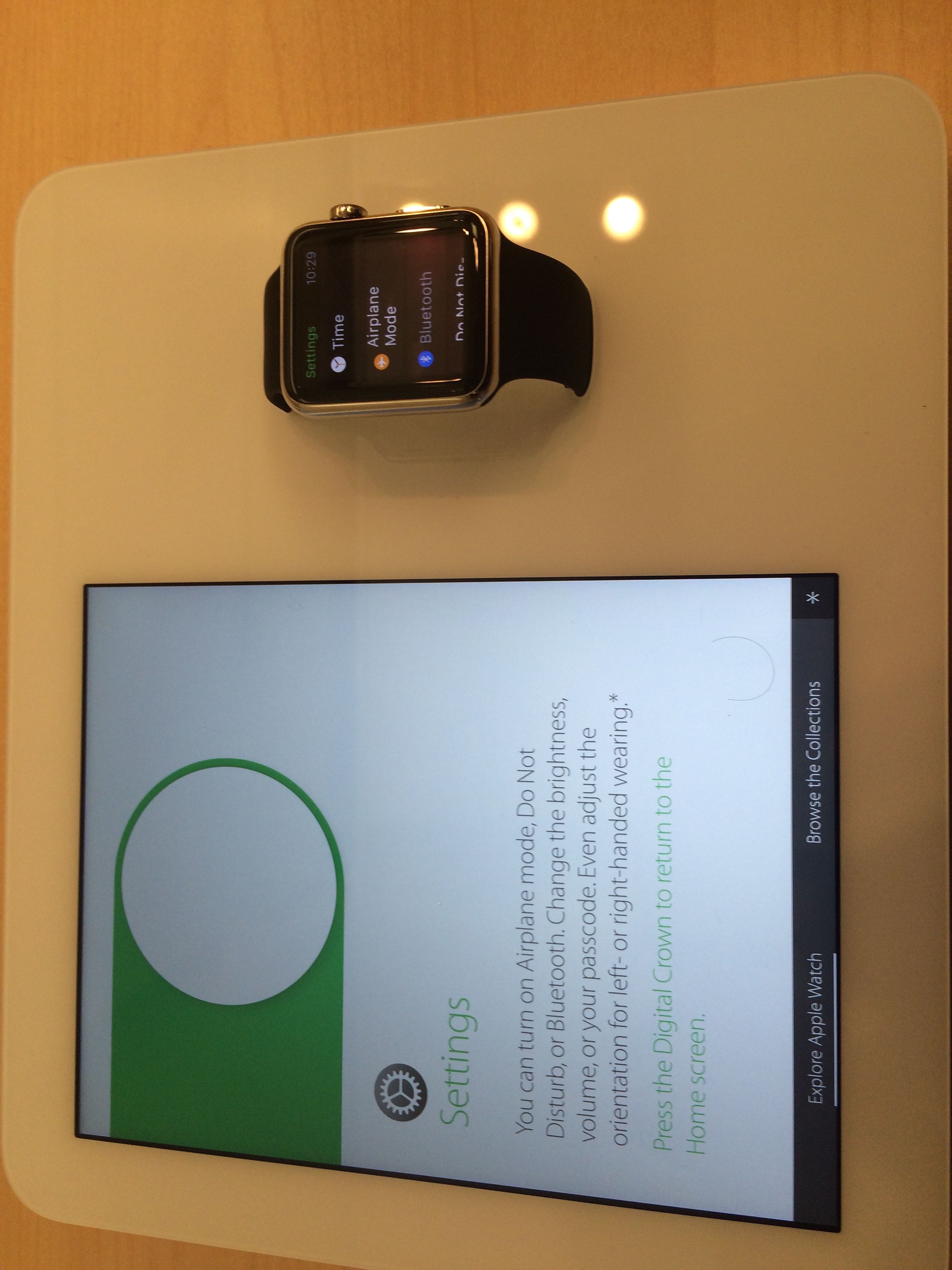 Both watches we tried on were dead which wasn’t great, but we were able to play with the functionality on the Apple watch attached to the Try-on desk, and at another display section later on after the try-on appointment was over.