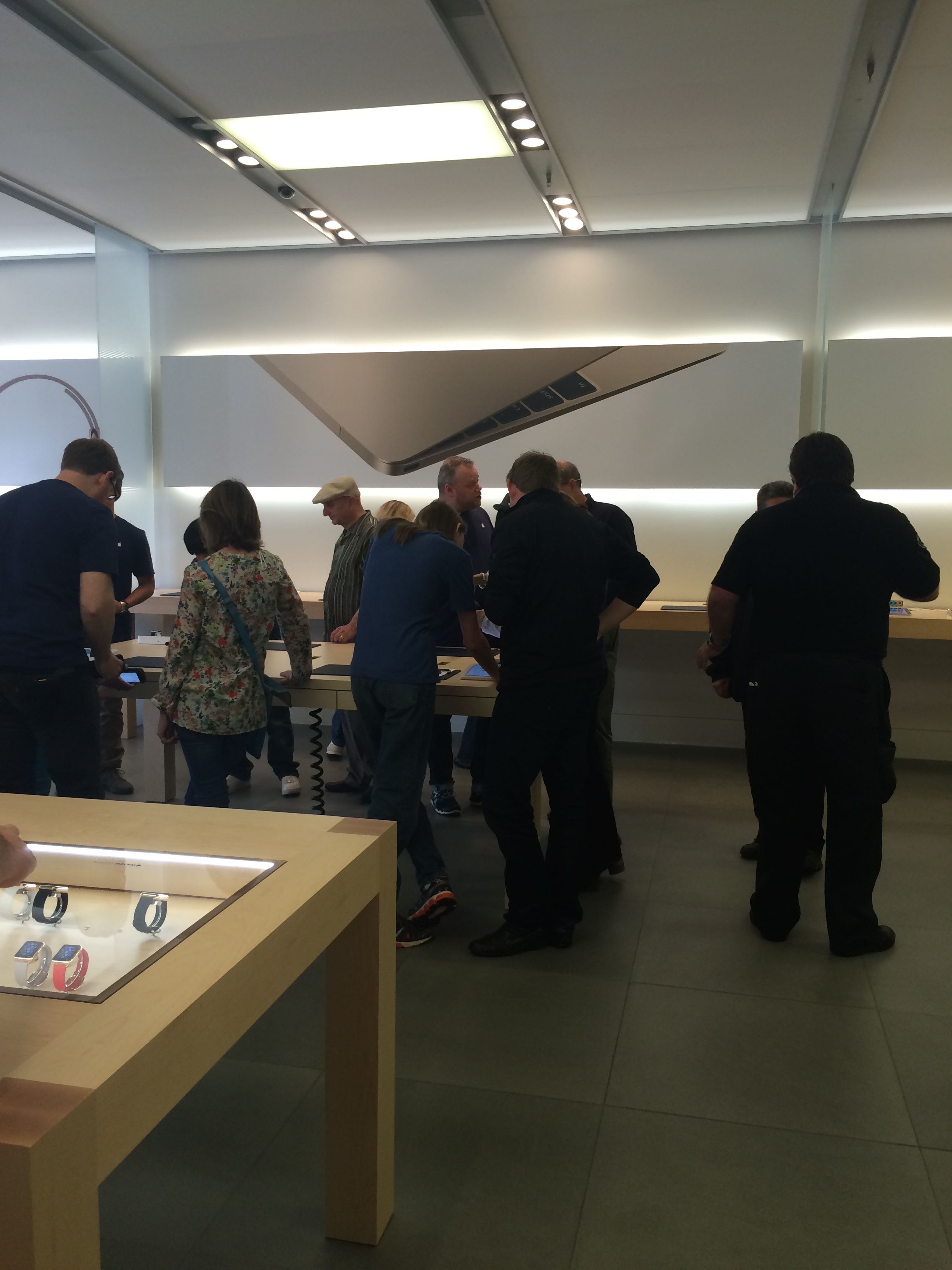 It wasn’t so much madness, actually. The retail store opened at 10:00AM this morning and we were one of about 40 people who entered the store- not all of whom were there to look at the Apple Watch… unless they were pretending and just sneaking looks. In fact, there seemed to be more employees than customers throughout the time we were there.